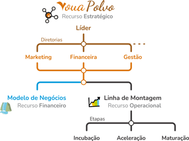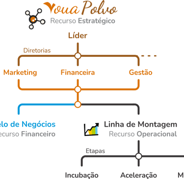 Este fluxo contínuo de recursos é estrategicamente orquestrado pela Estrutura Organizacional VouaPOLVO e viabiliza a Linha de Montagem Voua, nosso processo de transformar ideias em empreendimentos.